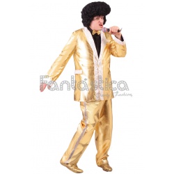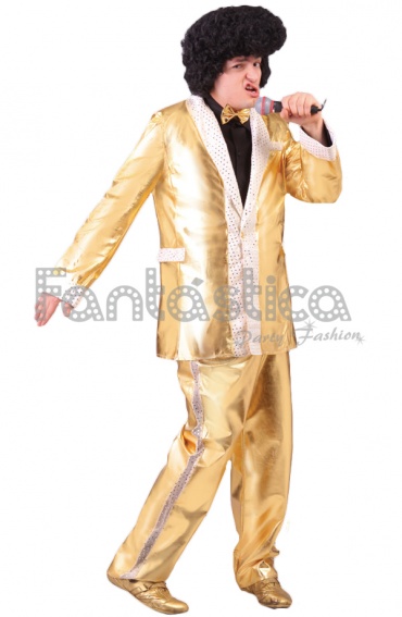 Elegante Disfraz para Hombre de Elvis Dorado, el rey del rock, perfecto para Carnaval, Halloween, fiestas de disfraces, despedidas de soltero/a, espectáculos y eventos especiales. El disfraz para hombre de Elvis, rey del rock, incluye chaqueta y pantalón.