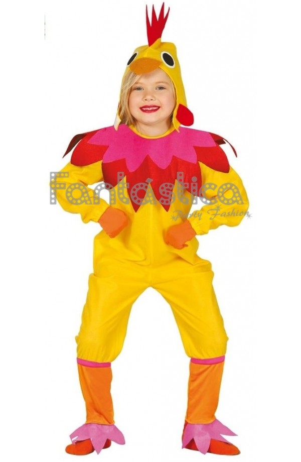 Divertido y simpático Disfraz para Niña de Gallina, perfecto para Carnaval, Halloween, fiestas de disfraces, espectáculos del colegio y eventos especiales. El disfraz para niña de Gallinita incluye vestido con capucha, cuello y mono. Que disfraz tan chulo y molón para tu peque! Tallas: G83269 5-6, G83270 7-9, G83271 10-12.
