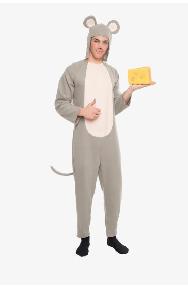 Disfraz Hombre Ratón Gris con Cola y Capucha