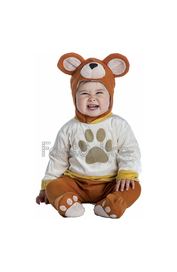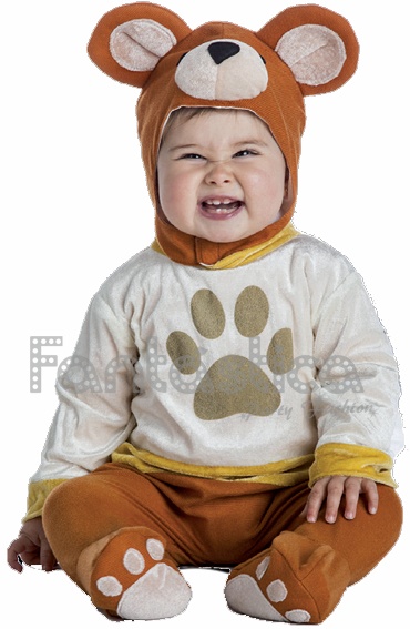 Simpático Disfraz para Bebé de Osito perfecto para Carnaval, Halloween, fiestas de disfraces, espectáculos y eventos especiales. El disfraz para bebé de Osito incluye mono y cabeza.