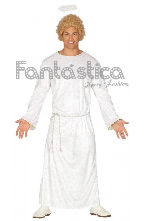 Fabuloso Disfraz para Hombre de Ángel perfecto para las Fiestas de Navidad, representaciones teatrales y musicales, funciones escolares, fiestas de disfraces, eventos y actos del colegio, obras de teatro, encuentros familiares de Navidad. El disfraz para hombre de Ángel Celestial incluye diadema, túnica y cinturón. Un disfraz sensacional para estas Fiestas!! Buena idea como disfraz para despedidas de soltero!