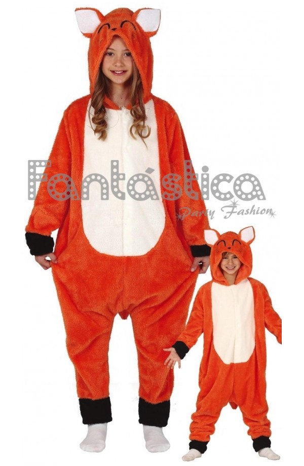 Divertido y simpático Disfraz para Niño y Niña de Zorro Pijama perfecto para Carnaval, Halloween, fiestas de disfraces, espectáculos, actos escolares y eventos especiales del colegio. El disfraz para niño y niña de zorrito pijama incluye traje con capucha. Tallas: G83622 5-6, G83623 7-9, G83624 10-12.