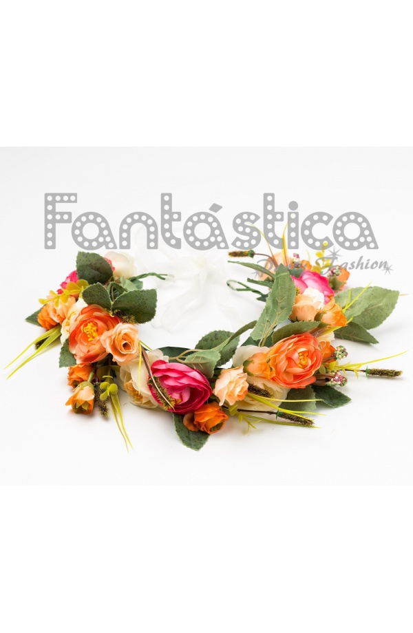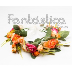 Spectacular Flower Crown in Orange and Pink tones, ideal to highlight all your hairstyles. Beautiful boho chic design for this incredible flower hairband. The best accessory for you to look Fantastic. This flower hairband is ideal for both, day and night. Improve any outfit with this flower garland and get ready to shine on shows, parties, themed parties, weddings and all kind of events!