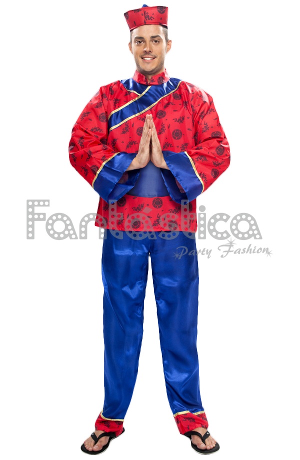 Divertido y precioso Disfraz para Hombre de Chino perfecto para Carnaval, Halloween, fiestas de disfraces, despedidas de soltero/a, espectáculos y eventos especiales. El disfraz para hombre de Chino incluye gorro, blusón, cinturón y pantalones.
