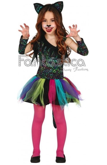 Disfraz para Niña Leopardo Arcoíris. Monísimo Disfraz para Niña Leopardo Arco Iris, ideal para Carnaval, Halloween, fiestas de disfraces, espectáculos, obras de teatro, shows, actos escolares y eventos especiales del colegio. El disfraz para niña leopardo arcoíris incluye diadema, vestido, mangas y cola. Tu princesa será el leopardo más colorido y dulce del mundo!