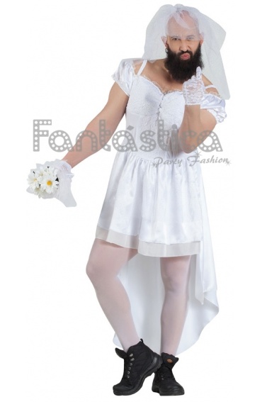 Divertido y simpático Disfraz para Hombre de Novia II ideal para Carnaval, Halloween, fiestas de disfraces, despedidas de soltero y soltera, espectáculos, shows, musicales, obras de teatro, fiestas temáticas, cumpleaños y eventos. El disfraz para hombre de Novia II incluye tocado con velo, vestido y guantes. Que disfraz tan gracioso! Serás el centro de todas risas y bromas de la fiesta!