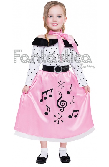 Disfraz para Niña Bailarina Rock Años 50. Chulísimo disfraz de jovencita bailarina de rock and roll años 50, que incluye camisa, falda, cinturón y pañuelo. Ideal para Carnaval, Halloween, fiestas de disfraces, fiestas y actos escolares, ferias, espectáculos, representaciones teatrales del colegio, espectáculos, fiestas infantiles y eventos especiales. Un precioso disfraz infantil para tu peque!
