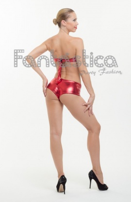 Amazing Red Sexy Jumpsuit for woman, model Irina. This short and sexy strapless jumpsuit is great for shows, events and dance performances. Metallic effect and elastic material. Get ready to leave everyone breathless! The perfect complement for acrobatic performers, dancers, gymnastics, go-go dancers, artists and strippers. Spectacular short sexy jumpsuit. One size. Good price for value