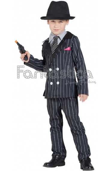 Disfraz para Niño Gánster Deluxe. Un disfraz de gánster infantil estupendo, que incluye chaqueta, camisa, corbata y pantalón. Ideal para que tu peque juegue a ser el capo mafioso más travieso del cole. El disfraz para niño de gangster es genial para fiestas de disfraces infantiles, Carnaval, Halloween, obras y representaciones escolares, ferias, espectáculos, cumpleaños o eventos especiales.