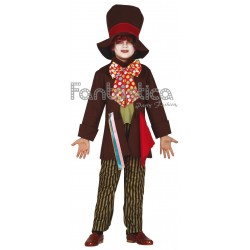 Divertido y simpático Disfraz para Niño Sombrerero Loco de Alicia en el País de las Maravillas. Tu peque lucirá guapísimo con el disfraz de su personaje favorito para jugar en Carnaval, Halloween, fiestas de disfraces, actos escolares, obras de teatro, espectáculos, representaciones del colegio, fiestas infantiles, cumpleaños y eventos especiales. Un disfraz chulísimo y muy de moda! Incluye sombrero, chaqueta con camisa, pajarita, pantalón. Tallas: G83589 5-6, G83590 7-9, G83591 10-12.