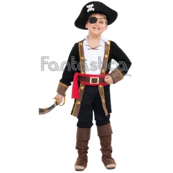 Disfraz para Niño Pirata Barbanegra. Magnífico disfraz de corsario que incluye casaca, camisa, cinturón, fajín y cubrebotas. Tu peque lucirá guapísimo con este disfraz en Carnaval, Halloween, fiestas de disfraces, actos y funciones escolares, ferias, espectáculos, representaciones teatrales, fiestas infantiles, cumpleaños, obras de teatro y eventos especiales. Tallas: K3782 / 3-4, K3783 / 5-6, K3784 / 7-9, K3785 / 10-12.