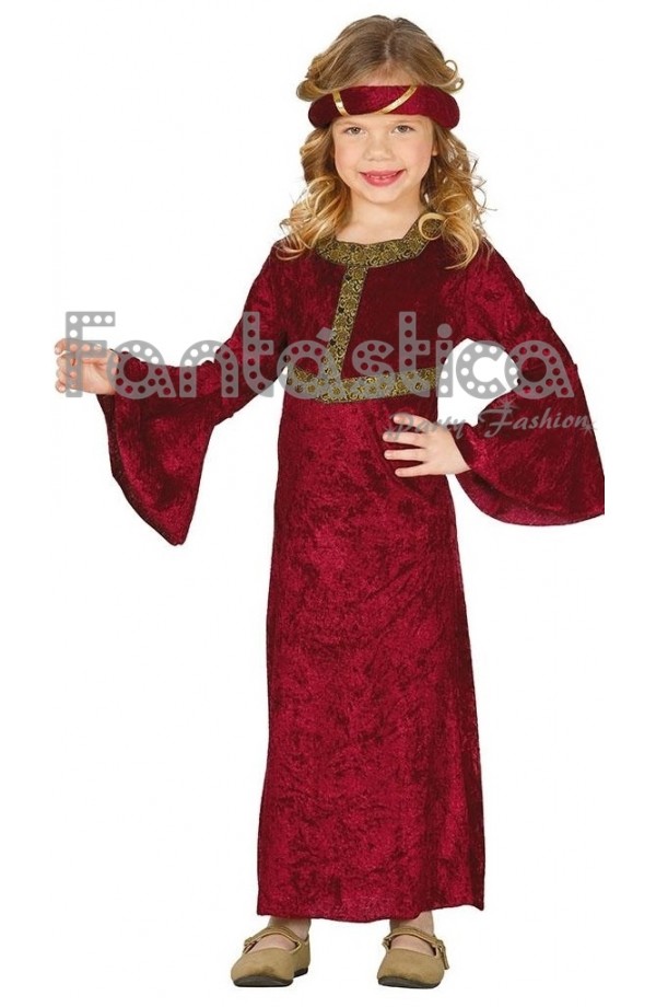 Disfraz para Niña Dama Medieval Princesa. Espectacular disfraz de cuento para niña, Princesa de Cuento o Dama Medieval. Incluye vestido medieval y cinta para la cabeza. Un disfraz sensacional para Carnaval, Halloween, cumpleaños, Navidad y Reyes, fiestas de disfraces, espectáculos, representaciones teatrales, fiestas infantiles y eventos especiales. ¡Es el disfraz que tanto desea tu princesa! Tallas: G81287 5-6, G81288 7-9, G81289 10-12.