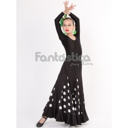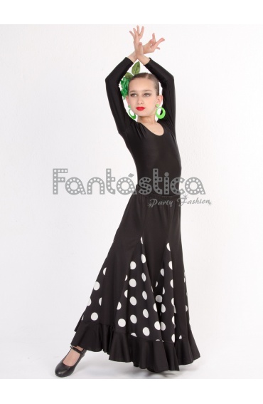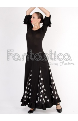 Beautiful Flamenco and Sevillanas Black Skirt with White Polka Dots for Girl and Woman. Amazing Flamenco and Sevillanas Dress perfect to dance any sort of Spanish Dance. Get the Flamenca, Gitana, Faralae, Andalusian and Folklórica look with this Black Skirt with White Polka Dots and Flounce. Sizes for Girl and Woman.