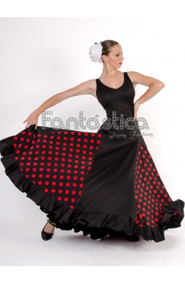 Beautiful Flamenco and Sevillanas Black Dress with Red Polka Dots for Girl and Woman. Amazing Flamenco and Sevillanas Dress perfect to dance any sort of Spanish Dance. Get the Flamenca, Gitana, Faralae, Andalusian and Folklórica look with this Black Dress with Red Polka Dots and Flounce. Sizes for Woman: S (135 cm long), M (140 cm long), L (143 cm long) and XL (145 cm long). Sizes for Girl: 4 (92 cm long), 6 (96 cm long), 8 (103 cm long), 10 (107 cm long), 12 (116 cm long) and 14 (122 cm long)