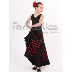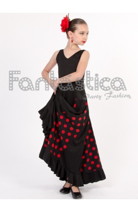 Flamenco and Sevillana Dress for Girl and Woman/ Black Dress with Red Polka Dots II