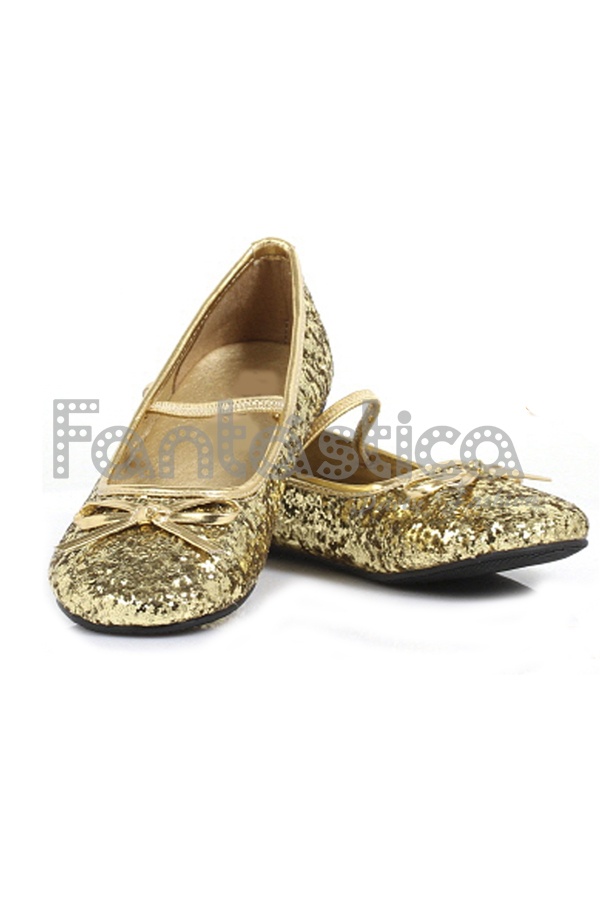 Lovely Sparkling Gold Ballerina Shoes. Sizes for both Girl and Woman. Ballet slippers ideal for fairy costumes, queen costumes, princess costumes… Great for Halloween, Christmas, Carnival and also for school events, family parties, dance shows, performances… Good price for value. Available in all colours. Sizes from 22 to 41.