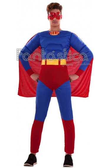 Disfraz para Hombre de Superman Héroe Musculoso perfecto para Carnaval, Halloween, fiestas de disfraces, despedidas de soltero y soltera, espectáculos, shows, cumpleaños, obras de teatro, representaciones, fiestas temáticas y eventos especiales. El disfraz para hombre de Superman Héroe Musculoso incluye mono con relleno imitando músculos, cinturón, máscara y capa.