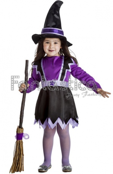 Disfraz para Niña Bruja Lila. Fantástico Disfraz para Niña Bruja de color lila perfecto para Carnaval, Halloween, fiestas de disfraces, espectáculos, actos escolares y eventos especiales del cole. El disfraz para Niña Bruja Morada incluye vestido y sombrero. Tu pequeña traviesa estará monísima y adorable con su disfraz de brujita lila.