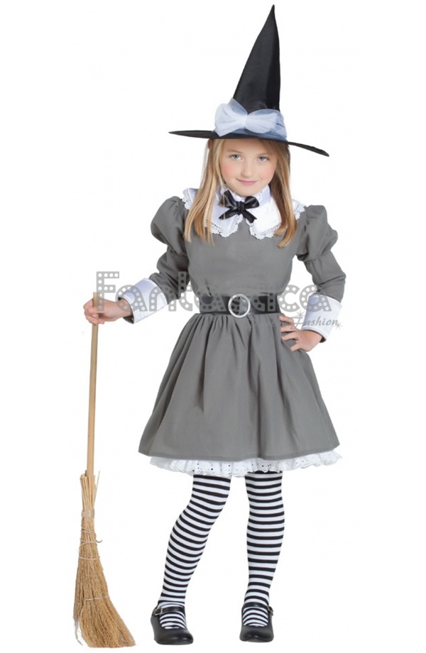 Disfraz para Niña Bruja Gris Sureste. Chulísimo Disfraz para Niña de Brujita gris que incluye sombrero, vestido, cinturón y medias. Un modelo genial para Carnaval, Halloween, fiestas de disfraces, actos escolares, espectáculos y eventos del cole. El disfraz infantil de bruja gris convertirá a tu peque en una auténtica brujita de cuento que será la protagonista indiscutible en la noche de Halloween!
