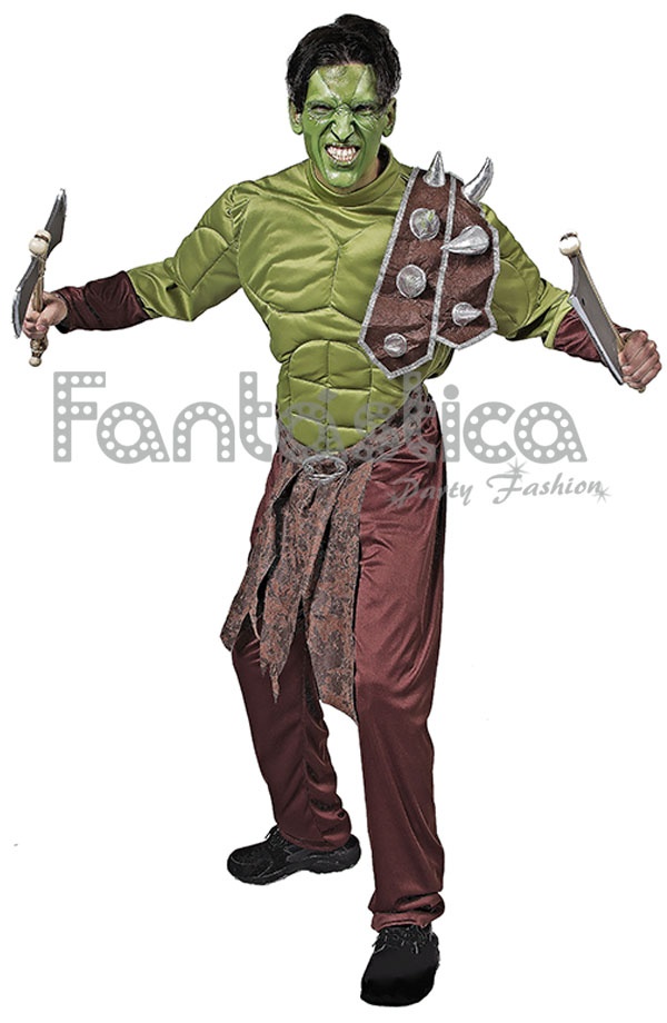 Disfraz para Hombre de Orco. Terrorífico disfraz para hombre de orco perfecto para Carnaval, Halloween, fiestas de disfraces, despedidas de soltero/a, espectáculos y eventos especiales. Talla única. Conviértete en el famoso orco del videoguego World of Warcraft, una de las criaturas más aterradoras del universo Azeroth.