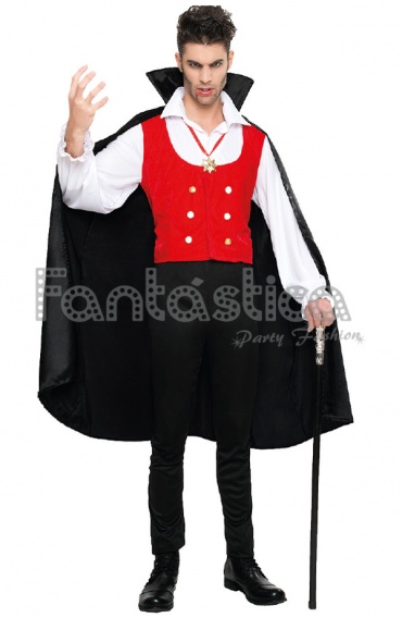Disfraz para Hombre Vampiro Apuesto. Elegante y sexy disfraz para hombre de vampiro, perfecto para Carnaval, Halloween, fiestas de disfraces, despedidas de soltero/a, espectáculos, obras de teatro, shows y eventos especiales. El disfraz para hombre de vampiro incluye camisa con chaleco, pantalones, capa y colgantes. Conviértete en un sexy vampiro y ningún cuello se resistirá a tus encantos.