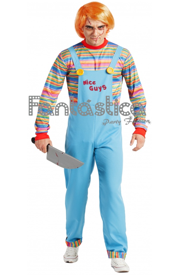Disfraz para Hombre de Chucky Muñeco Diabólico. Chulísimo disfraz para hombre de Chucky Muñeco Diabólico, perfecto para Carnaval, Halloween, fiestas de disfraces, despedidas de soltero/a, espectáculos y eventos. El disfraz para hombre Chucky Muñeco Diabólico incluye mono y jersey. Te atreves a quedarte a solas con este simpático amiguito en la noche de Halloween? Tal vez no sea tan buena idea!