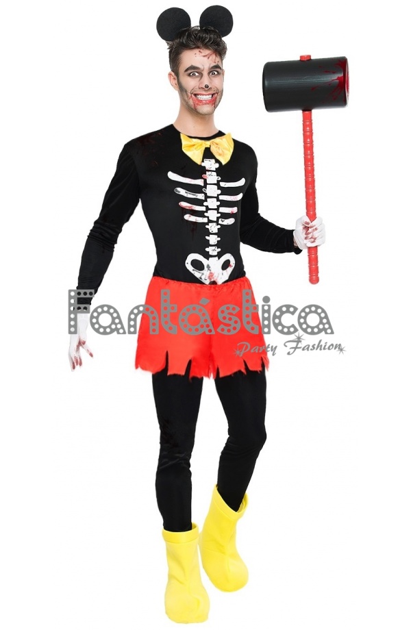 Disfraz para Hombre de Ratón Mickey Zombie. Escalofriantemente guapo disfraz para hombre de Ratón Mickey Zombie, perfecto para Carnaval, Halloween, fiestas de disfraces, despedidas de soltero/a, espectáculos y eventos especiales. El disfraz incluye mono, pantalones cortos, orejas, cubrebotas. Parece que el simpático Mickey Mouse ya no es un ratoncito bueno y dulce!