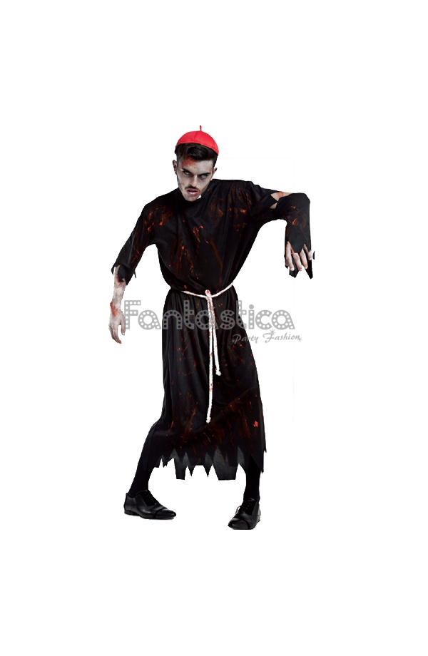 Disfraz para Hombre de Cura Zombie. Terrorífico disfraz para hombre de Cura Zombie, perfecto para Carnaval, Halloween, fiestas de disfraces, despedidas de soltero/a, espectáculos, shows y eventos especiales. El disfraz para hombre de Cura Zombie incluye túnica, cinturón y tocado. ¿Te atreverías a confesarte con este cura en la noche de Halloween? Más te vale estar libre de pecados!