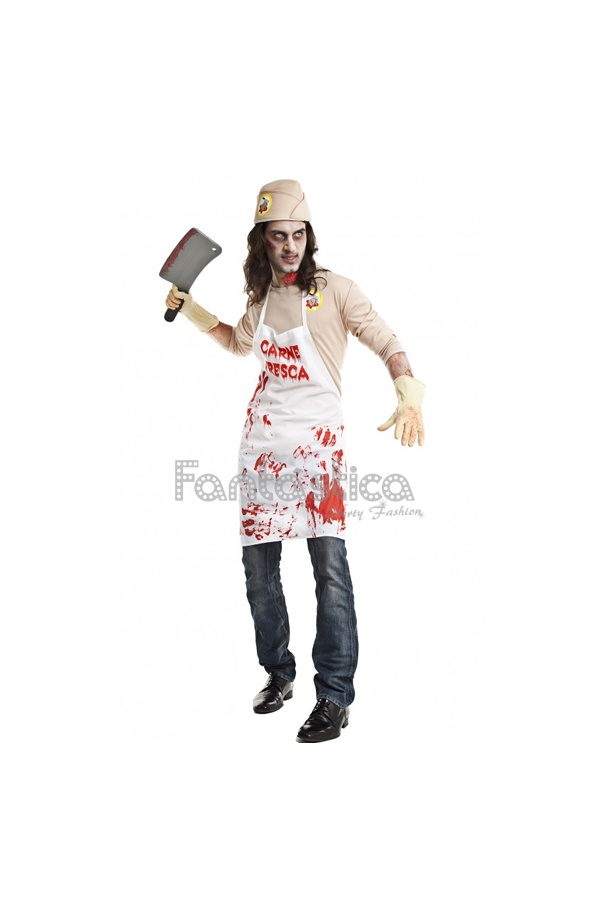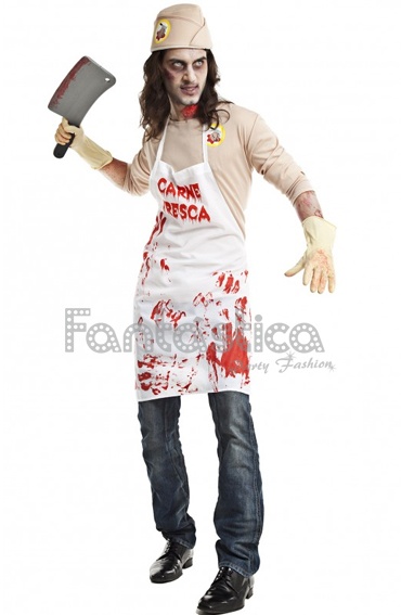 Espeluznante Disfraz para Hombre de Carnicero Asesino perfecto para Carnaval, Halloween, fiestas de disfraces, despedidas de soltero/a, espectáculos, shows y eventos especiales. El disfraz para hombre de Carnicero Asesino incluye camisa, delantal, guantes y sombrero. Mucho cuidado! Si te encuentras a este personaje en Halloween y te ofrece "carne fresca" será mejor que corras rápido! Muy rápido!