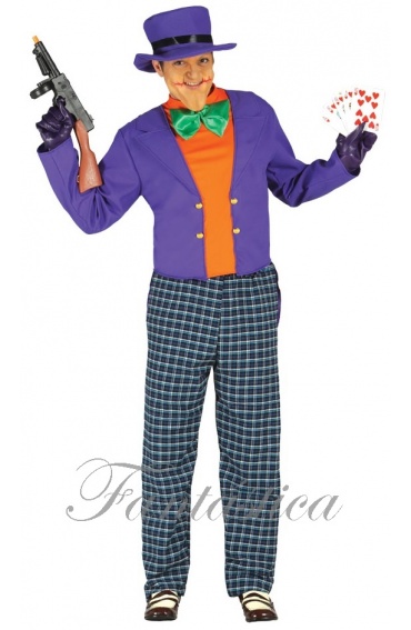 Disfraz para Hombre de Joker. Escalofriantemente chulo y siniestro disfraz para hombre de Joker, perfecto para Carnaval, Halloween, fiestas de disfraces, despedidas de soltero/a, espectáculos, obras de teatro, shows, musicales, cumpleaños y eventos especiales. El disfraz para hombre de Joker, incluye sombrero, chaqueta y pantalones. Serás el villano más perverso de la noche de Halloween!