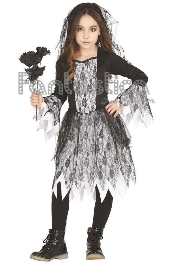 Perversamente guapo Disfraz para Niña de Novia Fantasma, perfecto para Carnaval, Halloween, fiestas de disfraces, espectáculos, obras de teatro, actos escolares, shows y eventos especiales del colegio. El disfraz para niña de Novia Fantasma incluye velo y vestido. Tu fantasma favorita enamorará a todos en Halloween con este disfraz tan chulo! Tallas: G87318 3-4, G87319 5-6, G87320 7-9, G87321 10-12.