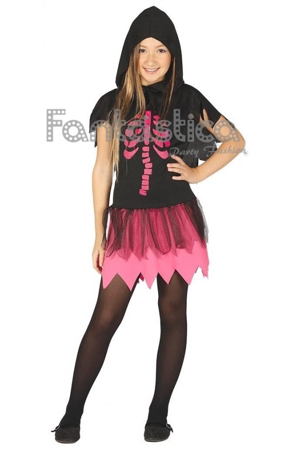 Terriblemente molón y guapo Disfraz para Niña de Esqueleto Fucsia, perfecto para Carnaval, Halloween, fiestas de disfraces, espectáculos, obras de teatro, actos escolares, shows y eventos especiales del colegio. El disfraz para niña de Esqueleto Fucsia incluye capa con capucha y vestido. Tu peque enamorará a todos en Halloween con este disfraz tan chulo! Tallas: G82551 7-9, G82552 10-12.