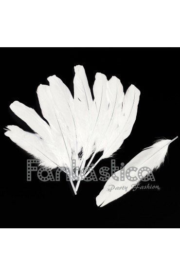 Plumas sueltas en color blanco, largo 20 cm. Bolsa de plumas de 20 cm en color blanco para trajes y disfraces de Carnaval, Halloween, fiestas de disfraces, carrozas, cabalgatas, trajes para eventos especiales (Orgullo Gay, Carnavales, Fallas, Navidades, Reyes, despedidas de soltero y soltera, fiestas de disfraces para cumpleaños, etc.) espectáculos de danza y teatro, fiestas y performances artísticas. Excelente relación calidad, cantidad y precio para plumas sueltas que pueden ser bordadas, cosidas o pegadas en trajes y disfraces de todo tipo de espectáculos y shows. Plumas de Pato (ánade) 20 cm color Blanco.