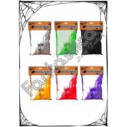 Tela de Araña 50 gr. para Disfraces y Decoración Halloween - Tela de Araña Color Blanco, Verde, Negro, Naranja, Rojo y Violeta