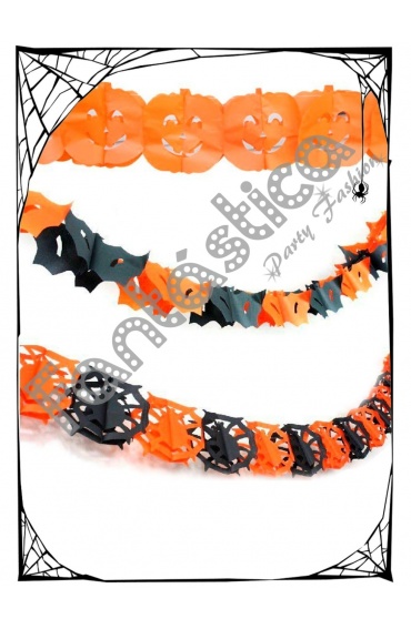 Guirnaldas para Decoración Halloween - Calabazas, Murciélagos y Arañas. Artículo estupendo para decoración de fiestas de Halloween en Discotecas, Pub's, Restaurantes, Colegios y casas particulares y así crear un ambiente autenticamente terrorífico. Además estas guirnaldas de Halloween son reutilizables ¡¡Celebra tu fiesta con la decoración para Halloween de Fantástica!! Largo guirnalda: 3 m.