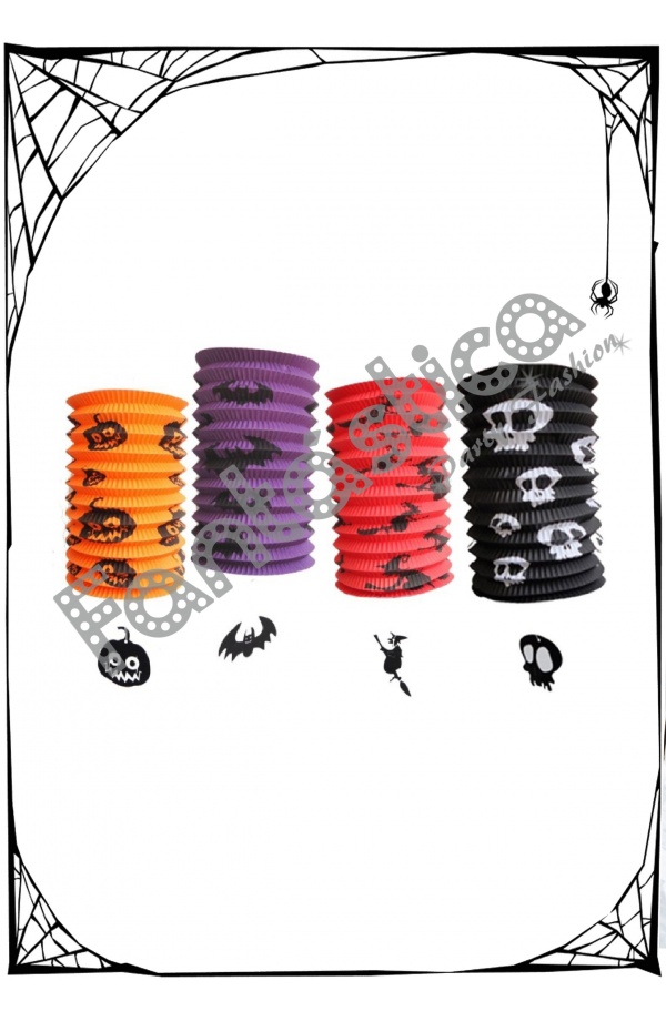 Farolillo Iluminación para Decoración Halloween - Farolillo colgante Color Naranja, Violeta, Rojo y Negro. Artículo estupendo para decoración de fiestas de Halloween en Discotecas, Pub's, Restaurantes, Colegios y casas particulares y así crear un ambiente autenticamente terrorífico. Este farolillo colgante para iluminación de Halloween es reutilizable. Tamaño: 15 cm.