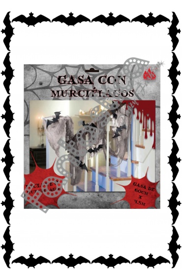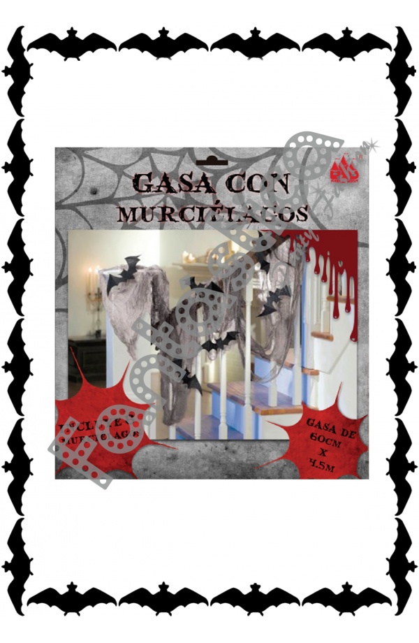 Gasa con Murciélagos para Decoración Halloween - Gasa Gris de 60 cm x 4,5 m con 8 Murciélagos. Artículo estupendo para decoración de fiestas de Halloween en Discotecas, Pub's, Restaurantes, Colegios y casas particulares y así crear un ambiente autenticamente terrorífico. Artículo reutilizable. ¡Celebra tu fiesta con la decoración para Halloween de Fantástica!