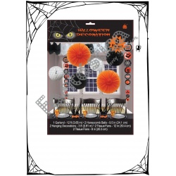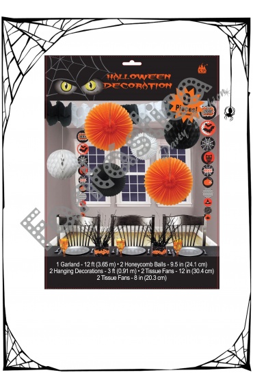 Set para Decoración Halloween de 9 piezas: 1 guirnalda y 8 colgantes. Estupendo set para decoración de fiestas de Halloween en Discotecas, Pub's, Restaurantes, Colegios y casas particulares y así crear un ambiente autenticamente terrorífico. Set reutilizable. ¡Celebra tu fiesta con la decoración para Halloween de Fantástica!
