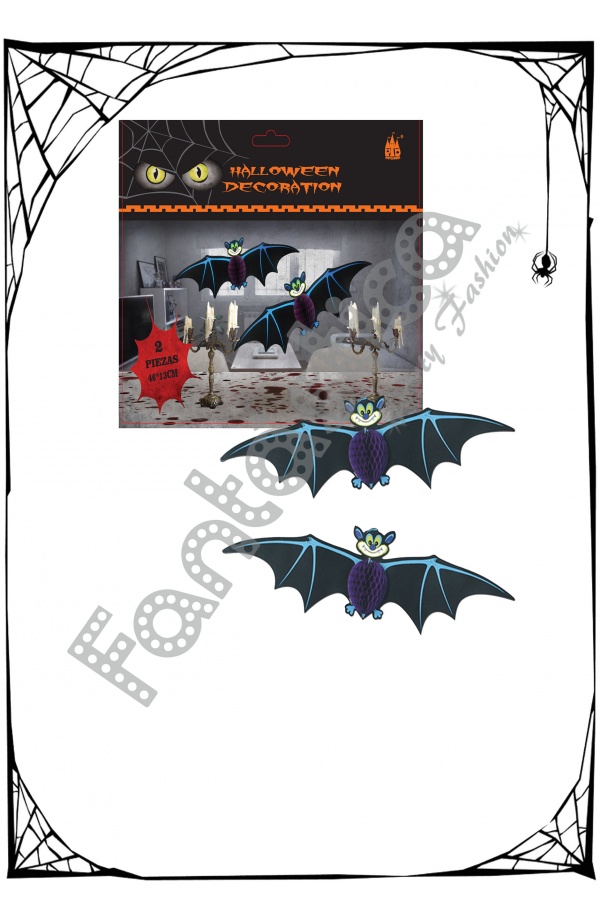 Adorno Colgante Murciélagos de 46 cm para Decoración Halloween. Artículo estupendo para decoración de fiestas de Halloween en Discotecas, Pub's, Restaurantes, Colegios y casas particulares y así crear un ambiente autenticamente terrorífico. Artículo reutilizable. ¡Celebra tu fiesta con la decoración para Halloween de Fantástica! Tamaño: 46 cm. Pack de 2 murciélagos.