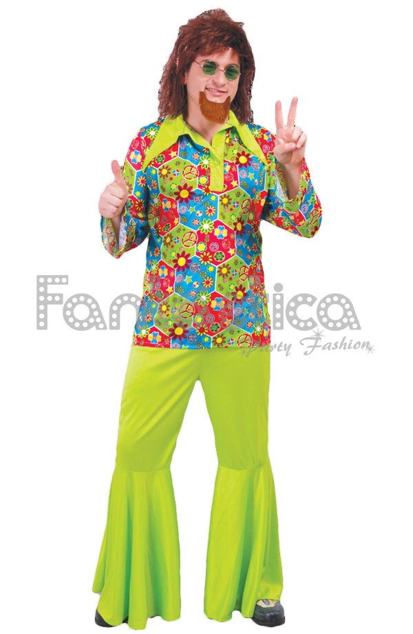 Divertido y molón Disfraz para Hombre de Hippie Flower Power, perfecto para Carnaval, Halloween, fiestas de disfraces, despedidas de soltero/a, espectáculos y eventos especiales. El disfraz para hombre de Hippie Flower Power incluye camisa y pantalón.