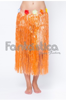 Falda Larga Hawaiana para Niña o Mujer - Falda Hawaiana Naranja