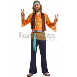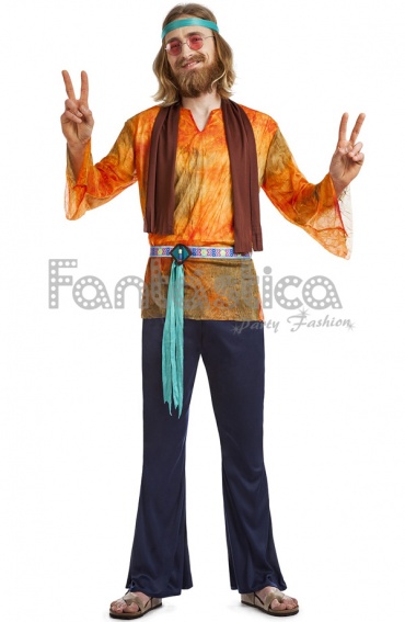 Divertido y molón Disfraz para Hombre Hippie Woodstock, perfecto para Carnaval, Halloween, fiestas de disfraces, despedidas de soltero/a, espectáculos y eventos especiales. El disfraz para hombre de Disfraz para Hombre Hippie Woodstock incluye camisa, pantalones, cinturón, foulard y cinta de la cabeza.