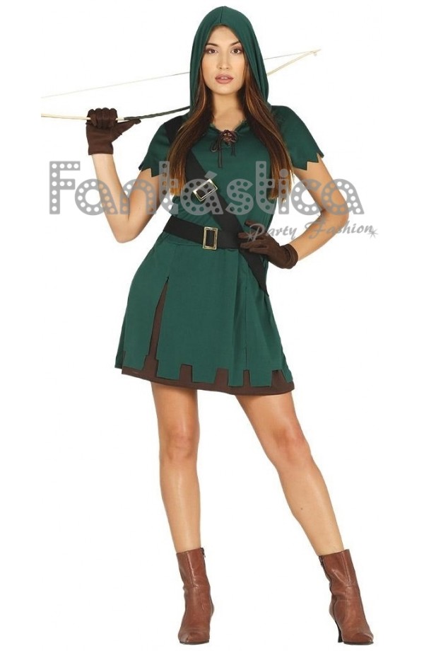 Disfraz para Mujer Arquera Cazadora Medieval. Chulísimo disfraz de arquera cazadora medieval que incluye vestido con capucha y cinturón. Lucirás espectacular y sexy! Un disfraz de arquera cazadora medieval perfecto para Carnaval, Halloween, fiestas de disfraces, despedidas de soltero/a, ferias y mercados medievales, fiestas de época, espectáculos, representaciones teatrales y eventos especiales.