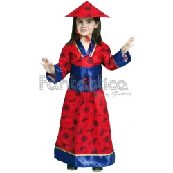 Disfraz para Niña de China ideal para Carnaval, Halloween, fiestas de disfraces, fiestas y actos escolares, ferias, espectáculos, representaciones teatrales del colegio, fiestas infantiles, cumpleaños, funciones escolares y eventos especiales. El disfraz para niña de China incluye vestido, cinturón y sombrero.