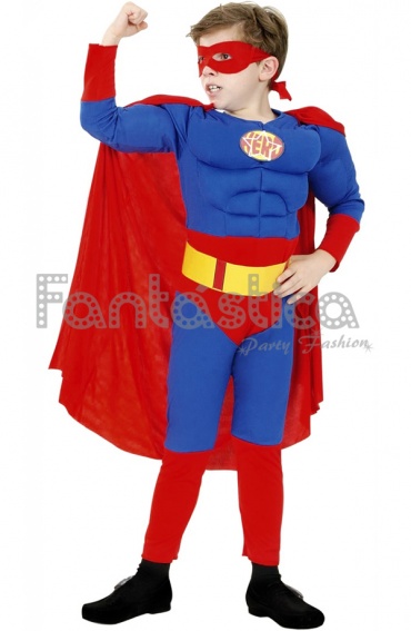 Divertido Disfraz para Niño Superman perfecto para Carnaval, Halloween, fiestas de disfraces, actos escolares, espectáculos, representaciones teatrales del colegio, fiestas infantiles, cumpleaños y eventos. El disfraz incluye mono relleno imitando músculos, cinturón, máscara y capa. Es el regalo que tu peque está deseando para Navidades, Reyes o su cumpleaños! Un regalo que no olvidará!
