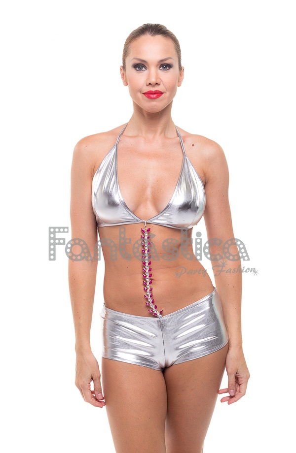 Trikini Sexy para Danza para Mujer Modelo Eva Color Plateado. Ideal para shows, espectáculos y actuaciones de danza, vestuario de baile, performances de acrobacia. Complemento para bailarinas de gimnasia artística y rítmica, gogós, artistas y streapers. Espectacular trikini elástico corto plateado. Un complemento espectacular para eventos especiales, shows y espectáculos, Carnaval, Halloween, Orgullo Gay, fiestas de disfraces, coreografías de sexy dance, sexy style, burlesque, sensual dance, barra americana, pole dance, baile erótico o cualquier ocasión en la que quieras desplegar todo tu magnetismo y sensualidad. Talla única. Material elástico. Color: Plateado. Tan guapa, sexy e impactante como la mismísima Kendall Jenner!!