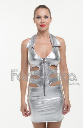 Vestido Corto Sexy para Danza para Mujer Modelo Olga Color Plateado. Ideal para shows, espectáculos y actuaciones de danza, vestuario de baile, performances de acrobacia. Complemento para bailarinas de gimnasia artística y rítmica, gogós, artistas y streapers. Espectacular vestido elástico corto plateado. Talla única. Material elástico.