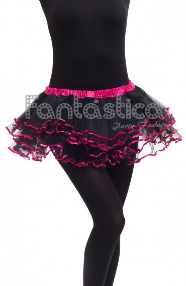 Tutú con Volantes para Niña y Mujer Negro y Fucsia. Tutú color negro y fucsia ideal para ballet, fiestas temáticas, cumpleaños, Carnaval, Halloween, eventos, fiestas de disfraces, shows, espectáculos, festivales de danza, despedidas de soltera, etc. Talla única, válida tanto para una niña pequeña como para mujer. La cintura del tutú es elástica y se estira sin problemas (límite talla 40).